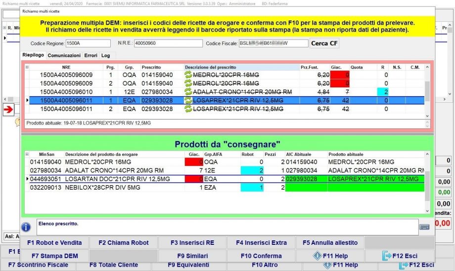 Con la dematerializzazione delle ricette risulta essere utile, nonché di ausilio, poter conoscere preventivamente i farmaci da erogare, onde evitare numerosi spostamenti tra banco e cassettiera.
