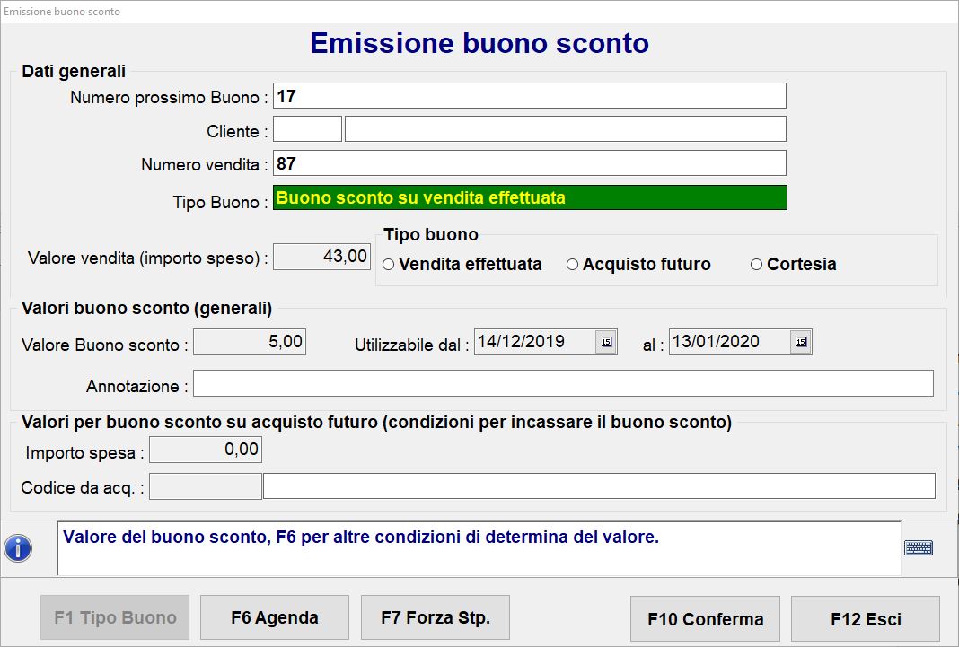 Funzione utilizzabile previa impostazione da richiedere al proprio Concessionario di zona al fine di definire e far impostare il valore massimo del buono da emettere.