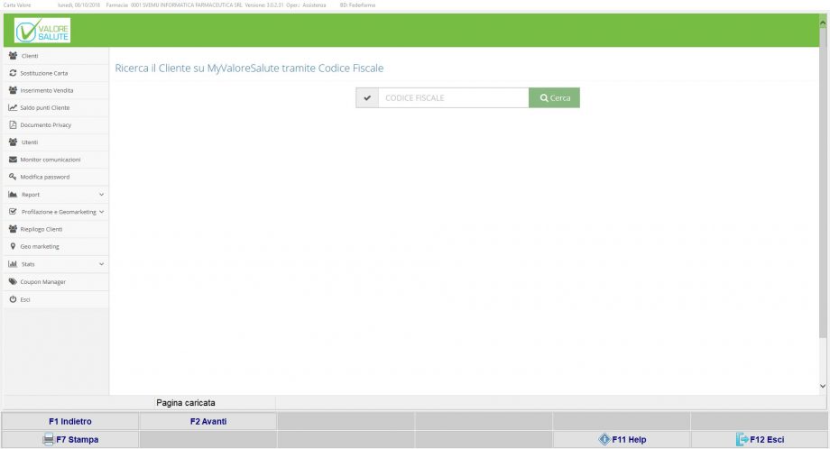 - A questo punto il gestionale ti reindirizzerà sul circuito Carta Valore (web) al fine di consentirti di attivare la tessera ricercando il cliente ad essa abbinato tramite Codice fiscale.