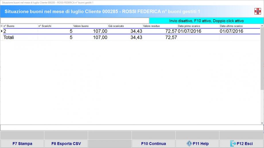 • Se vuoi visualizzare la gestione attiva dei buoni in corso di erogazione nel mese corrente premi F2 – Visualizza situazione buoni gestiti nel mese di xxxx.