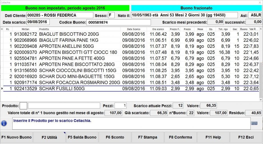 Se il buono spendibile viene completamente scaricato in un secondo momento potrai visualizzare solo la cronologia di vendita e quindi non potrai più aggiungere ulteriori prodotti (la procedura ti avviserà bloccando l’operazione).Scarico fine residuo buono Celiachia