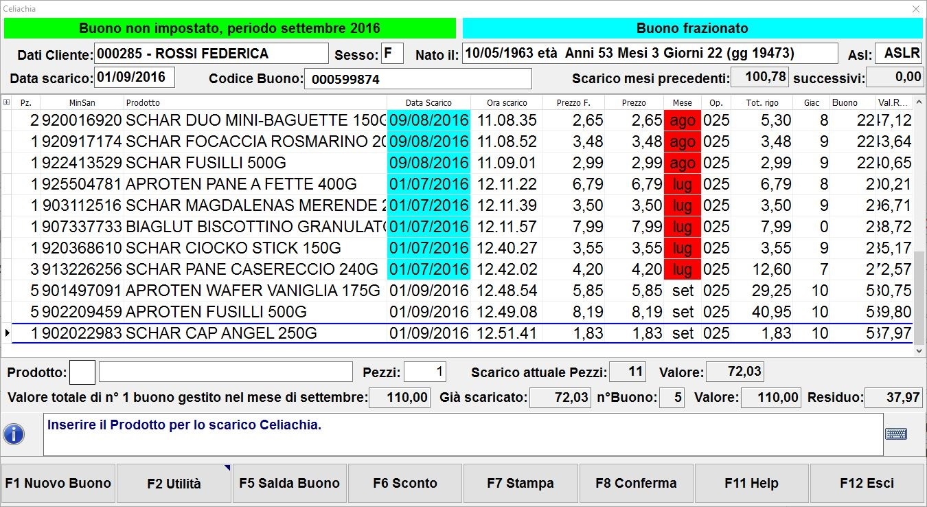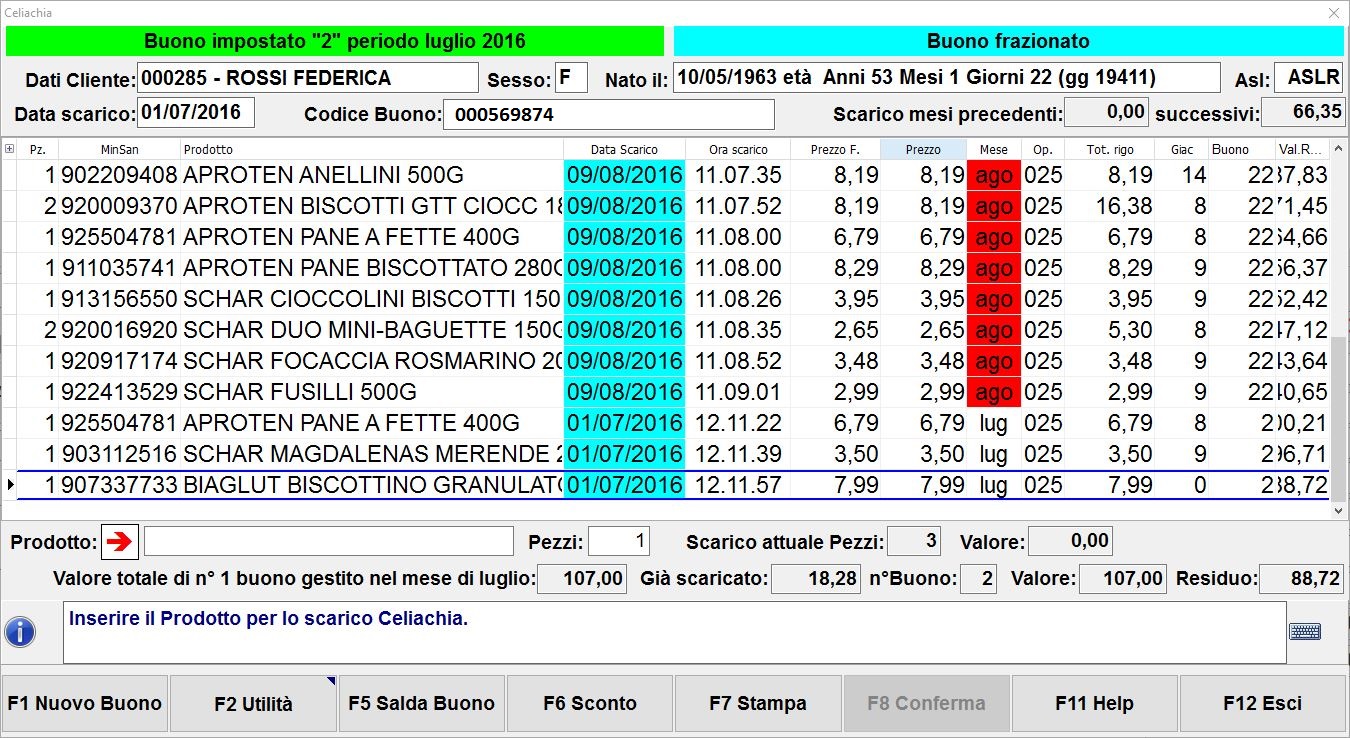 Se il buono spendibile viene completamente scaricato in un secondo momento potrai visualizzare solo la cronologia di vendita e quindi non potrai più aggiungere ulteriori prodotti (la procedura ti avviserà bloccando l’operazione).Scarico fine residuo buono Celiachia