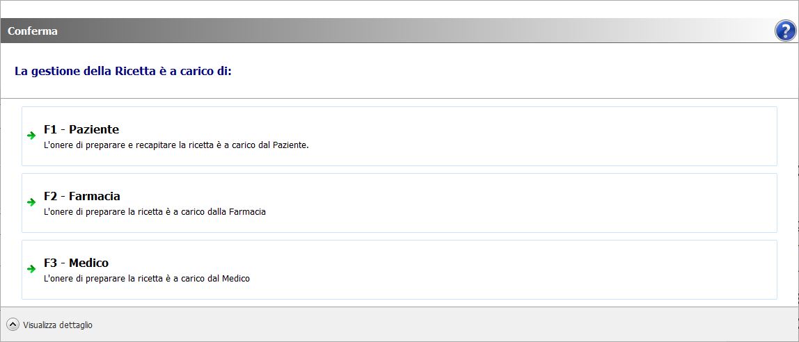 - A questo punto visualizzerai la finestra di conferma scelta di presa in carico delle operazioni di gestione ricetta: