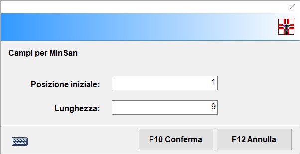 - Dopo aver aperto il file txt visualizzerai la seguente schermata all’interno della quale devi impostare la posizione iniziale e la lunghezza dei codici Minsan (importando un file txt formato da un codice Minsan di 9 caratteri devi lasciare i valori come visualizzati di default). Conferma l’operazione con .
