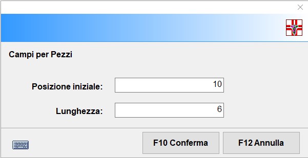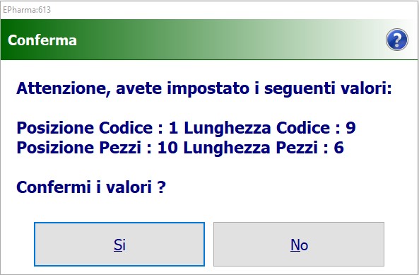 - Nella schermata che visualizzerai di seguito devi invece inserire la posizione iniziale e la lunghezza del numero dei pezzi (importando un file txt avente già la posizione ed il numero di pezzi devi lasciare i valori come visualizzati di default). Conferma l’operazione con e poi con Si il riepilogo dei valori impostati.