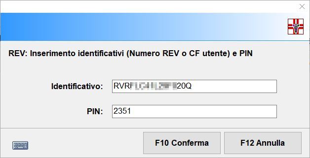 - Qualora però ti sia stato fornito Codice fiscale e PIN oppure Codice azienda e PIN, per inserirli e per accedere alla REV premi su (sotto il campo inserimento) oppure su e clicca sul box , visualizzerai la maschera di inserimento dati identificativi della ricetta.