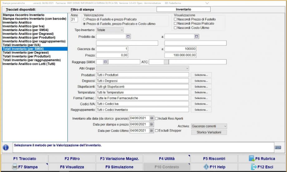 Nel contesto delle Stampe parametriche premendo puoi altresì effettuare estrazioni di prodotti filtrabili per specifica categoria farmaceutica.