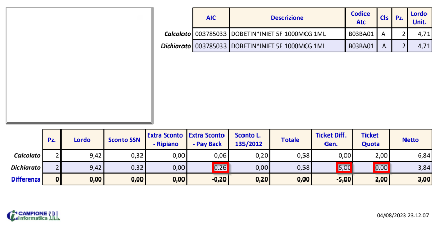 Per effettuare tale verifica è necessario controllare dallo storico quando la variazione di prezzo è avvenuta, se si era recepito in tempo utile l’aggiornamento di banca dati, se il valore indicato dalla ASL corrisponde effettivamente al Ticket Diff. Generico o se, come abbiamo evinto in qualche caso, si riferisce erroneamente al valore Extra Sconto.