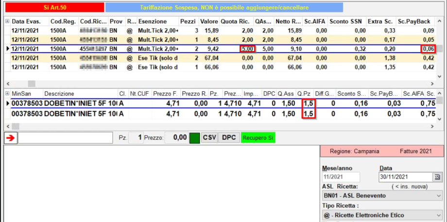 Controllo ricette su valori Sconto (SSN, Pay Back, Ripiano).