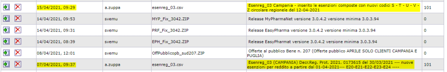 Aggiunte nuove esenzioni a gestionale (E20 – E21 – E22 – E23 – E24) in data 7 Aprile 2021, dopo recepimento del Decreto Regionale Prot. 2021. 0173615 del 30/03/2021.