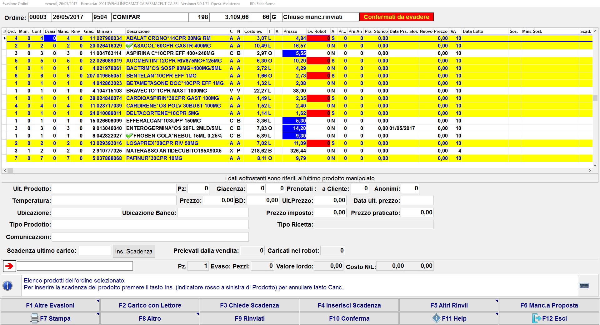1. carico con bolla (o terminologia assimilabile), si inserisce il numero dell’ordine e di seguito si procede con il carico dei prodotti nel Robot, in questo modo viene caricata la giacenza a gestionale e modificata la quantità acquistata (aumentando quindi la giacenza totale della Farmacia);