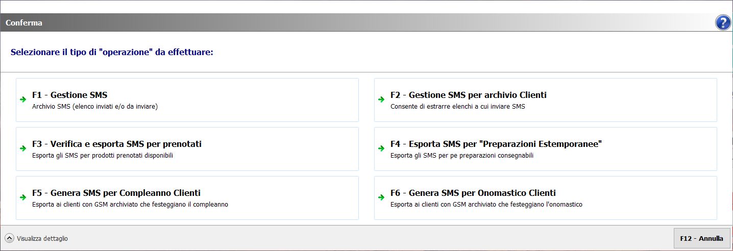 - per programmare ed estrarre, inserendo l’intervallo di date, l’elenco dei clienti ai quali inviare sms di auguri.