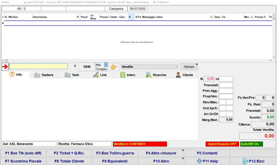 Accedi al gestionale e nel contesto F1 Vendita visualizza il tasto dedicato al servizio Miaterapia: