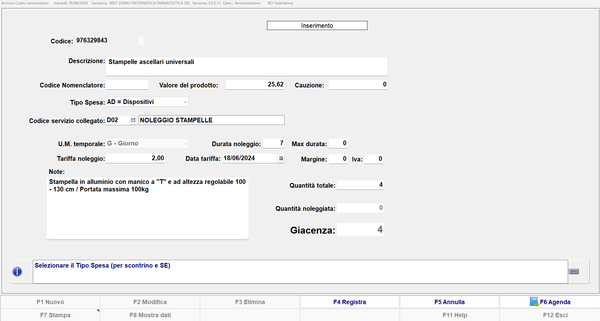 Procedura che consente di gestire in Farmacia in maniera precisa e semplificata il noleggio di apparecchi medicali ed elettromedicali, supporti e presidi sanitari, ausili ortopedici ecc.
