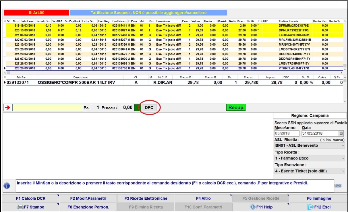 - Al termine dell’inserimento di TUTTE LE RICETTE da tariffare a mano esci dal contesto con e procedi come di consueto, ovvero premi e successivamente premi ; infine procedi con la stampa della distinta.