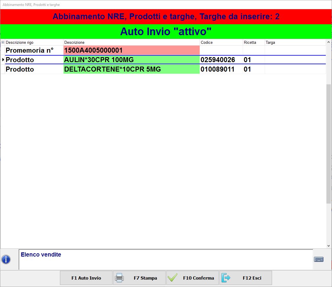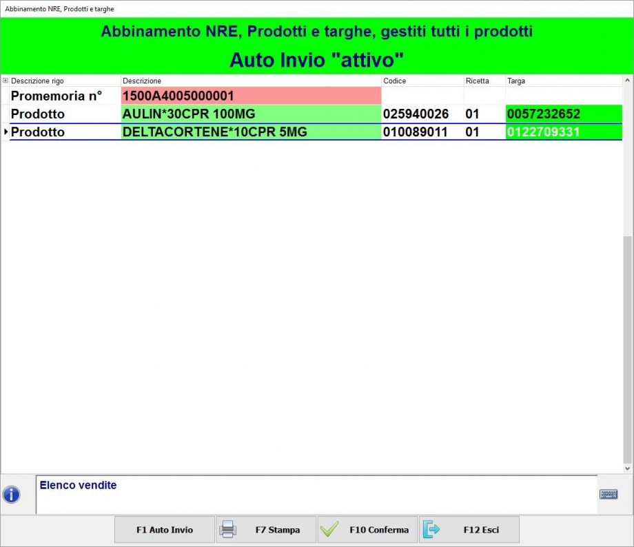 6. Infine premi F10 Conferma per visualizzare il riepilogo del/i prodotto/i erogato/i.