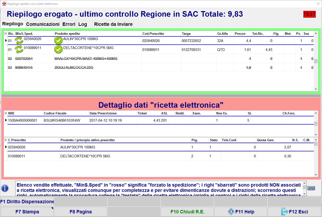 7. Conferma e spedisci la ricetta a Sogei con F10 Chiudi R.E..